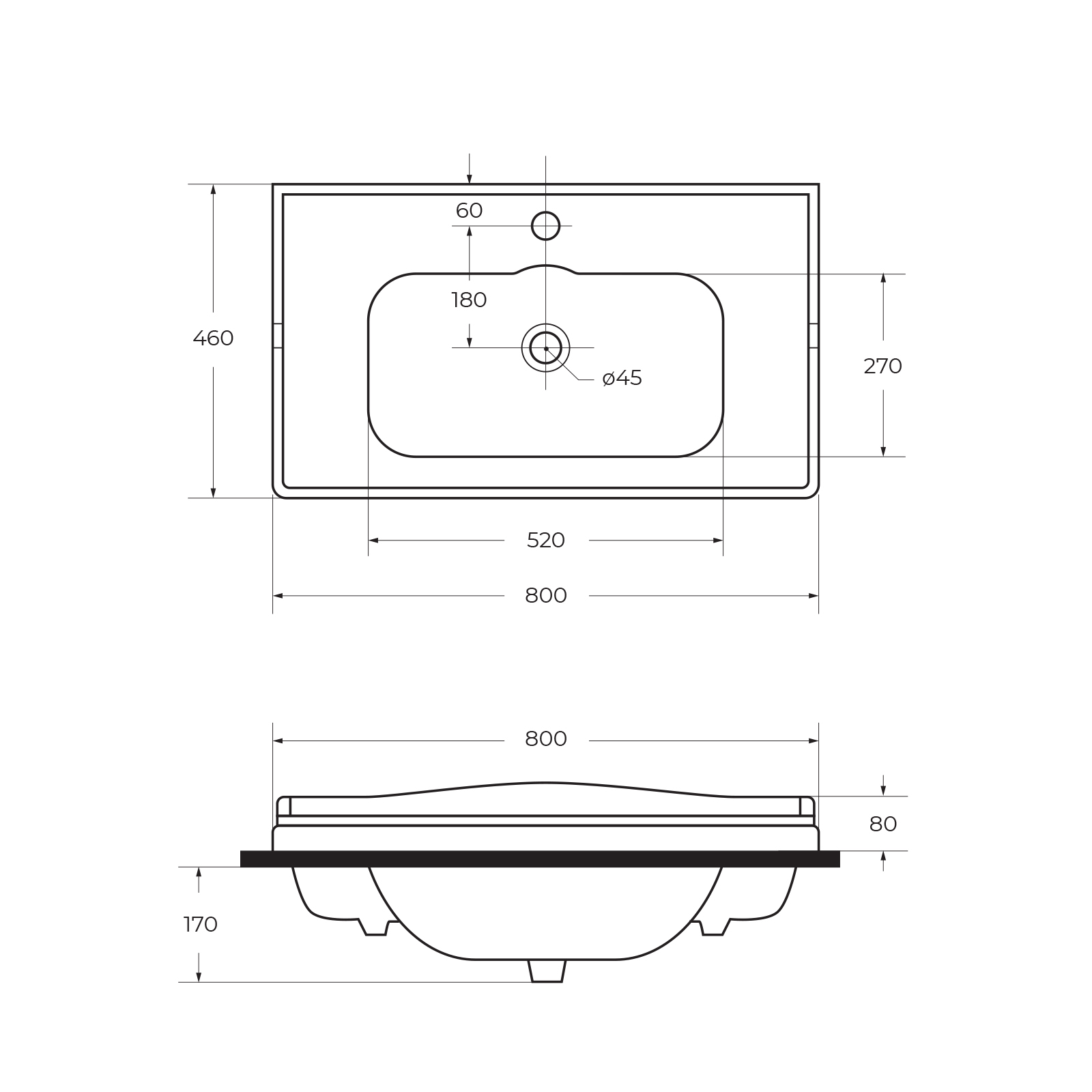 Керамическая раковина PRADO, 800x480x150 PRADO-800-LVB BELBAGNO